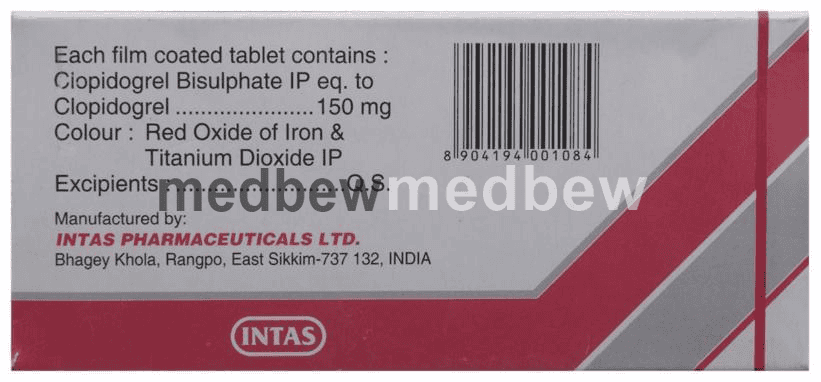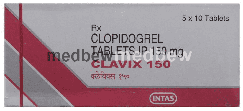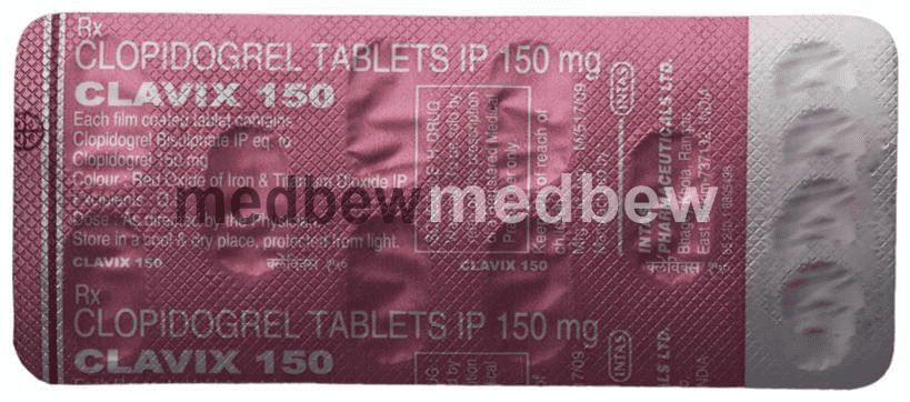 Clavix 150 Tablet is an antiplatelet medication. It works by preventing platelets from sticking together, thereby decreasing the formation of harmful blood clots. This lowers the chance of heart attack or stroke.
