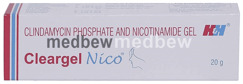 Cleargel Nico Gel is a combination medicine that is used to treats acne. It minimizes excessive oil production, thus reduces inflammation. It also prevents the growth of the microorganisms that cause acne. This also helps to prevent pimples, blackheads, and whiteheads on the skin.
