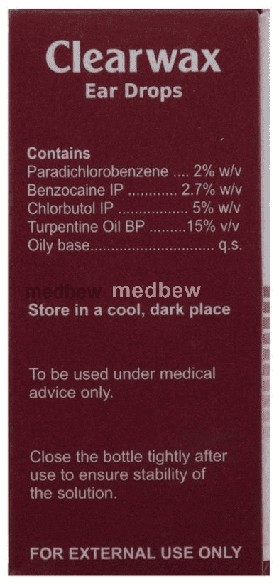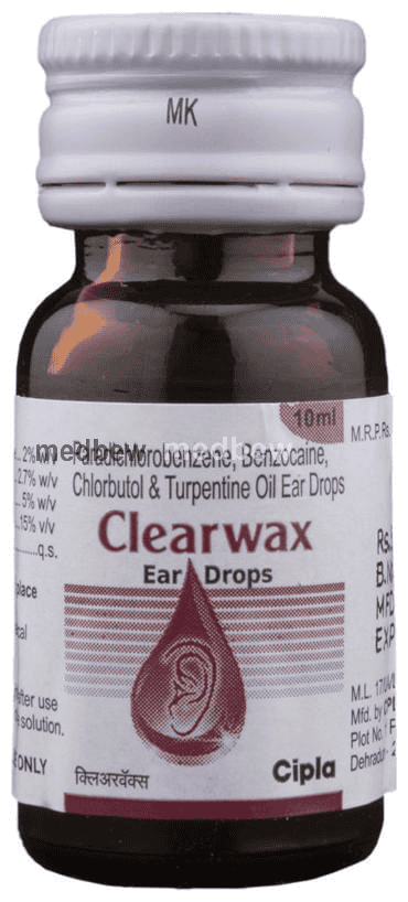 Clearwax Ear Drop is a medicine used to treat pain in the ear. It helps in dissolving the ear wax. This way it relieves pain caused by hardened wax inside the ear.