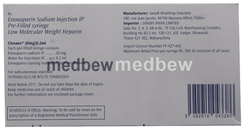 If you miss a dose of Clexane 20mg Injection, please consult your doctor.