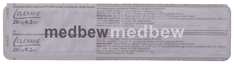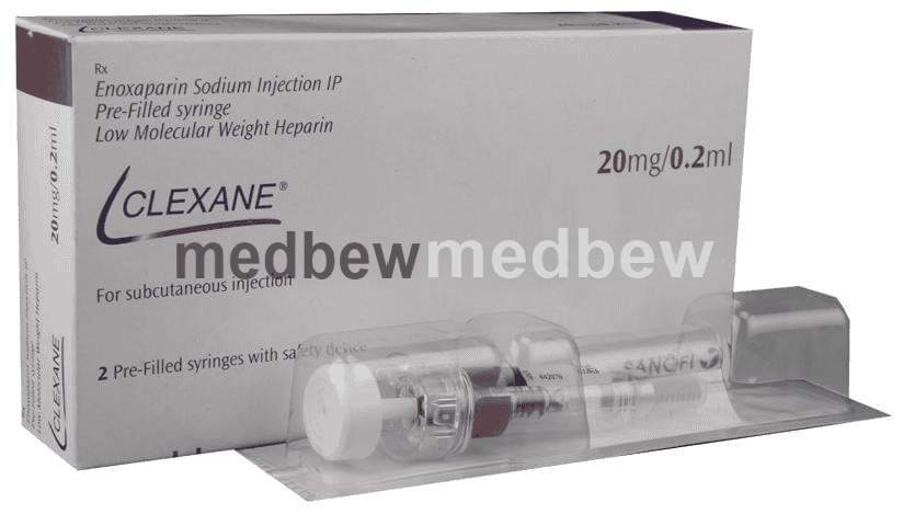 Clexane 20mg Injection is an anticoagulant used to prevent and treat harmful blood clots. It stops the existing clots from getting any bigger and restricts the formation of any new clot. It is also helpful in the prevention of blood clots in veins, a condition called deep vein thrombosis, and pulmonary embolism.