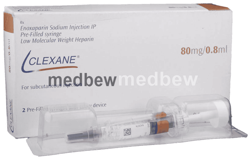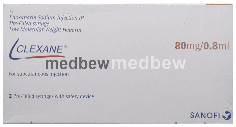 Clexane 80mg Injection is an anticoagulant used to prevent and treat harmful blood clots. It stops the existing clots from getting any bigger and restricts the formation of any new clot. It is also helpful in the prevention of blood clots in veins, a condition called deep vein thrombosis, and pulmonary embolism.