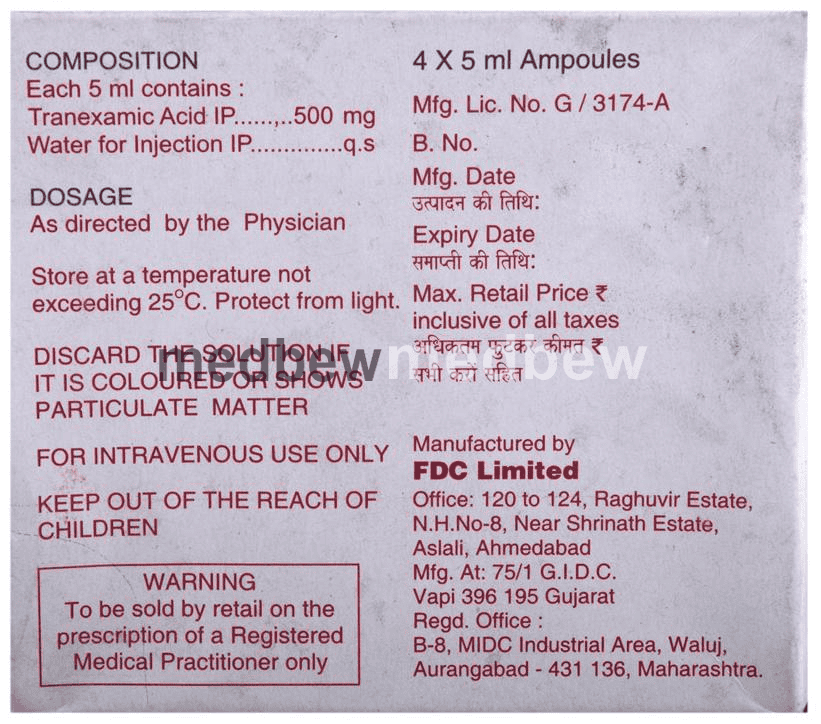 Clip Injection is an anti-fibrinolytic. It works by preventing the breakdown of clots which leads to the stoppage of bleeding. This injection must be administered under the supervision of a healthcare professional. You should not take it if you have any known allergy to this injection.