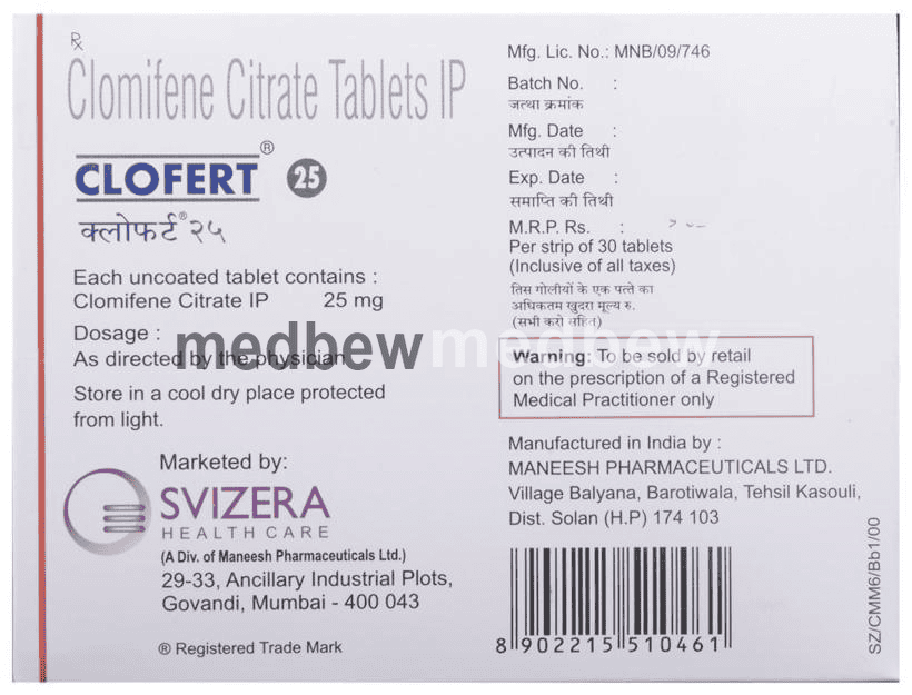 If you miss a dose of Clofert 25 Tablet, please consult your doctor.