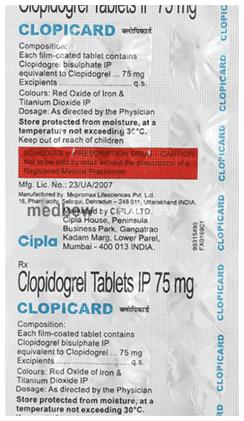 Omeprazole ( a proton pump inhibitor or PPI used to treat and prevent indigestion) may interfere with the working of Clopicard 75mg Tablet and reduce the effect of Clopicard 75mg Tablet. Your doctor may prescribe an alternate PPI like lansoprazole, if you suffer from indigestion or if they judge that it would be beneficial to you. You should let your doctor know about all the medicines that have been prescribed to you before starting Clopicard 75mg Tablet. Always consult your doctor before taking any medicine.