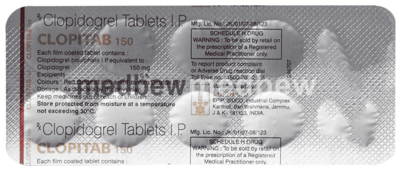 Clopitab 150 Tablet is an antiplatelet medicine or a blood thinner that helps to prevent the formation of harmful blood clots in your blood vessels. This helps to lower the chances of you getting a heart attack or stroke. It is a widely used medicine for heart protection.