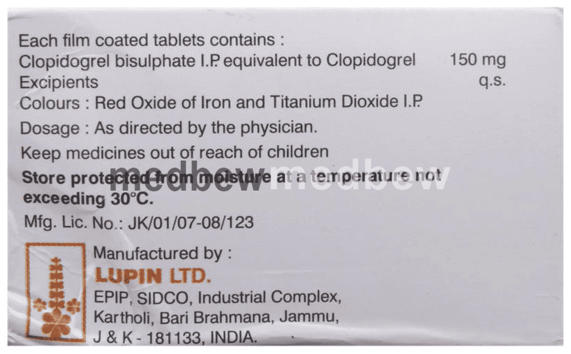 Clopitab 150 Tablet is an antiplatelet medication. It works by preventing platelets from sticking together, thereby decreasing the formation of harmful blood clots. This lowers the chance of heart attack or stroke.