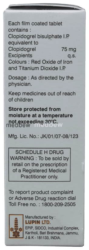 Clopitab Tablet is an antiplatelet medicine or a blood thinner that helps to prevent the formation of harmful blood clots in your blood vessels. This helps to lower the chances of you getting a heart attack or stroke. It is a widely used medicine for heart protection.