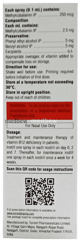 Cobaswift NS Nasal Spray is a supplement of vitamin B12. It is used to treat low levels of vitamin B12 in your body. Vitamin B12 is essential in the formation of red blood cells and helps in the absorption of iron in the body. It also helps your body use fat and carbohydrates for energy and make new protein. In combination with other vitamins, it helps in strengthening the immune system, improves the metabolism of the body, and is important for the nervous system.