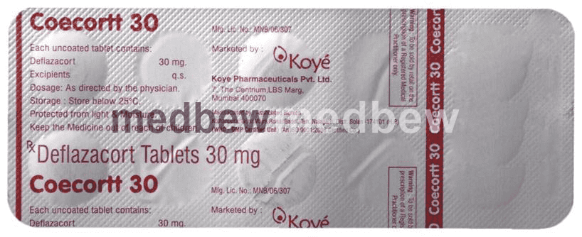 Coecortt 30 Tablet helps treat inflammation, severe allergies, flare-ups of ongoing illnesses, and many other medical problems that require either reduction of inflammation or suppression of the immune system.