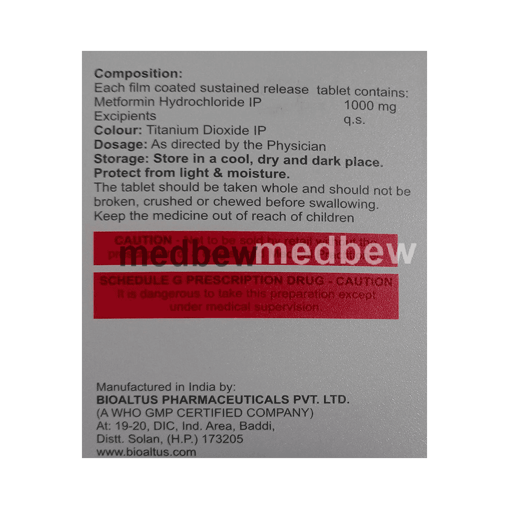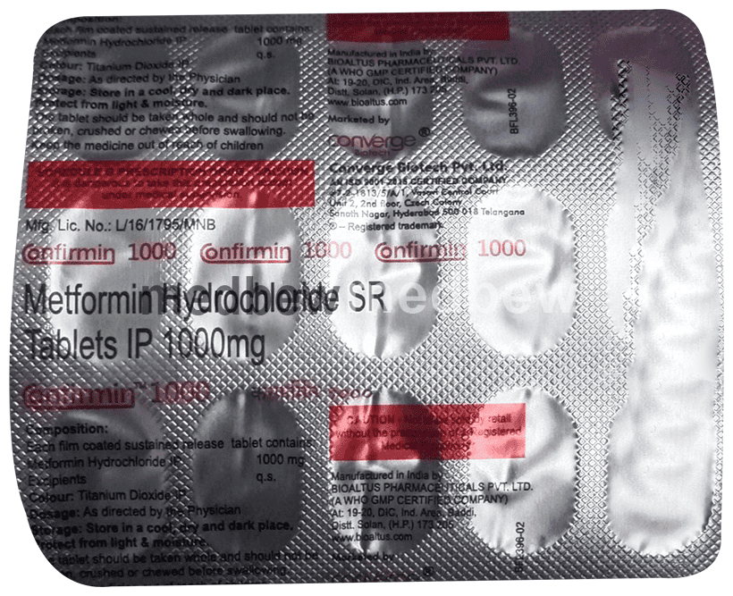 Confirmin 1000 Tablet SR is a medicine used to treat type 2 diabetes mellitus. It helps control blood sugar levels and thus prevent serious complications of diabetes. It is also used to treat a menstruation-related disorder known as Polycystic ovary syndrome (PCOS) in women.