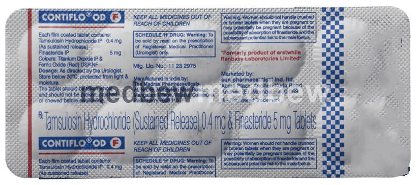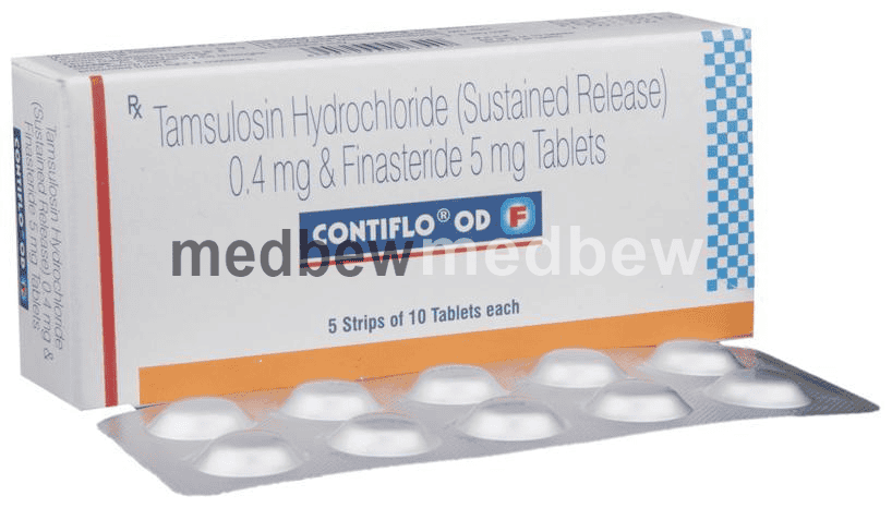 Contiflo OD F Tablet SR is a combination of two medicines that work in different ways to treat men with an enlarged prostate gland. It helps to relieve symptoms such as difficulty urinating or needing to go to the toilet more often. It is not used to prevent prostate cancer.