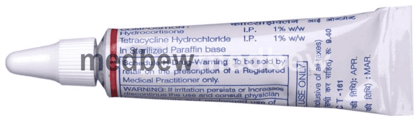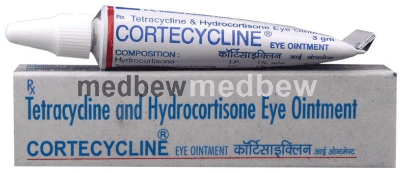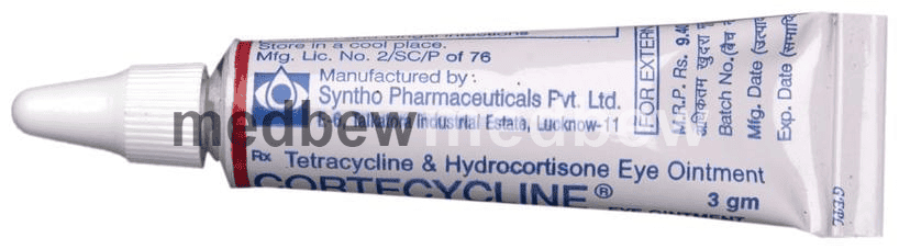 Cortecycline Eye Ointment is a combination of two medicines: Tetracycline and Hydrocortisone which treat eye infection. Tetracycline is an antibiotic which stops bacterial growth by preventing the synthesis of essential proteins required by bacteria to carry out vital functions. Hydrocortisone is a steroid. It blocks the production of certain chemical messengers (prostaglandins) that make the eye red, swollen and itchy.