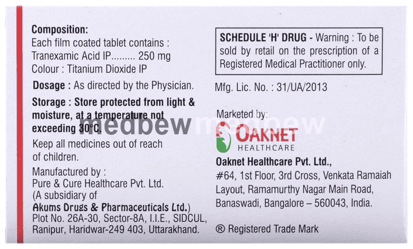 Cosmelite TX Tablet is an anti-fibrinolytic. It works by preventing the breakdown of blood clots to control excessive bleeding during periods, or after surgery.