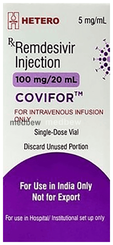 Covifor 100mg Injection is a broad-spectrum antiviral medicine. It is used for the treatment of suspected or laboratory-confirmed coronavirus disease 2019 (COVID-19) in adults and children hospitalized with severe disease. The medicine decreases the viral load in the body and speeds up the recovery process.