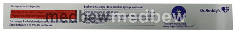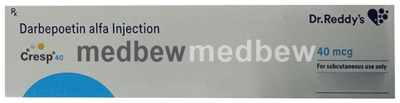 Cresp 40 Injection is used in the treatment of anemia that may have occurred due to chronic kidney disease or chemotherapy. It works by stimulating the bone marrow to produce more red blood cells.