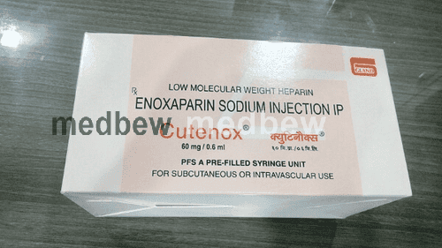 Cutenox 60mg Injection is an anticoagulant used to prevent and treat harmful blood clots. It stops the existing clots from getting any bigger and restricts the formation of any new clot. It is also helpful in the prevention of blood clots in veins, a condition called deep vein thrombosis, and pulmonary embolism.