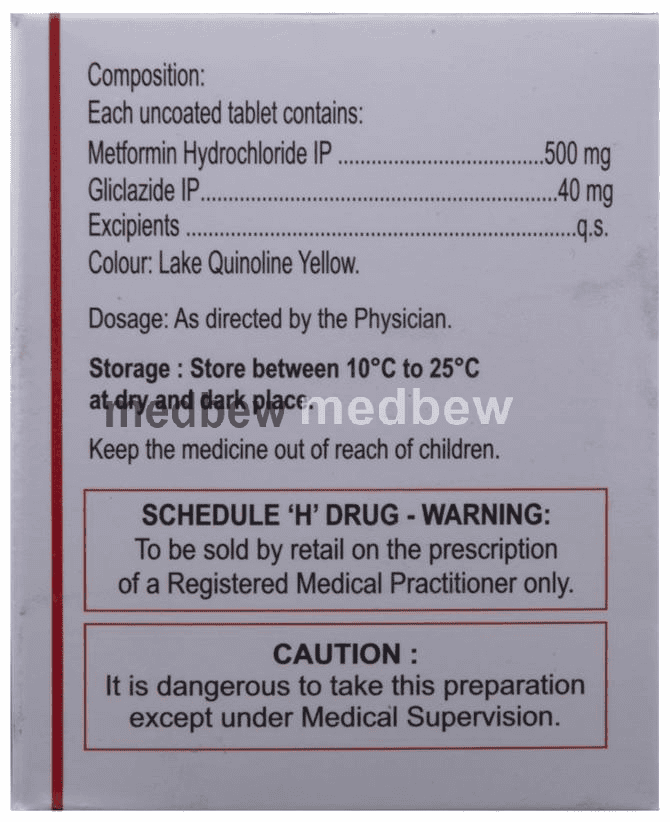 Composition Gliclazide (40mg) + Metformin (500mg)
