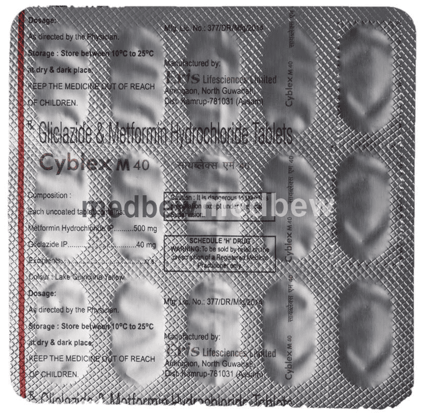 Cyblex M 40 Tablet belongs to a category of medicines known as anti-diabetic drugs. It is a combination of two medicines used to treat type 2 diabetes mellitus in adults. It helps control blood sugar levels in people with diabetes.
