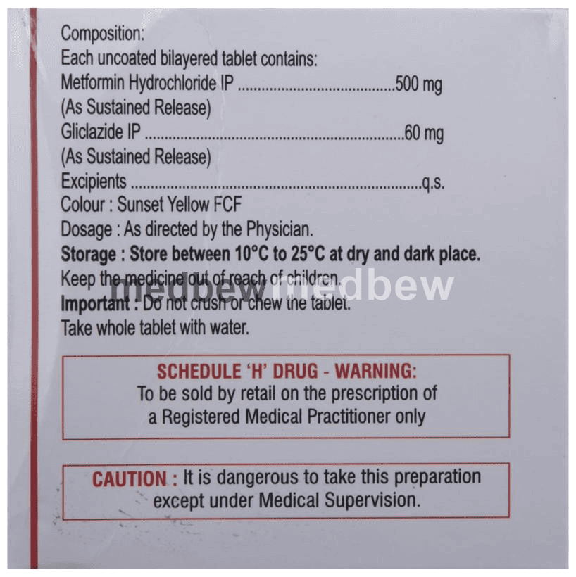 Composition Gliclazide (60mg) + Metformin (500mg)