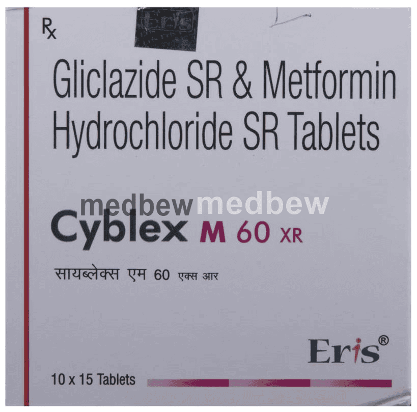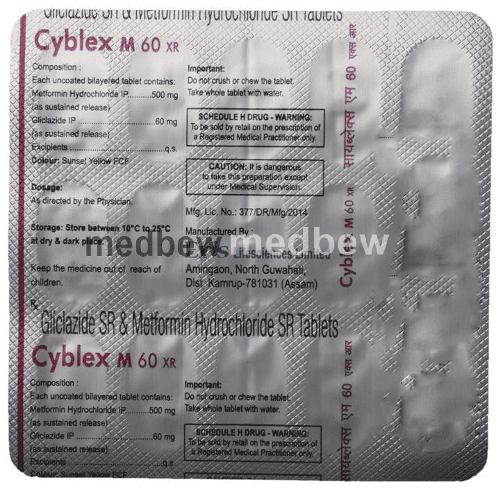Cyblex M 60 XR Tablet belongs to a category of medicines known as anti-diabetic drugs. It is a combination of two medicines used to treat type 2 diabetes mellitus in adults. It helps control blood sugar levels in people with diabetes.