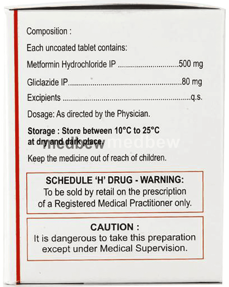 Composition Gliclazide (80mg) + Metformin (500mg)