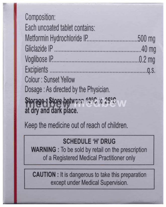 Composition Voglibose (0.2mg) + Metformin (500mg) + Gliclazide (40mg)