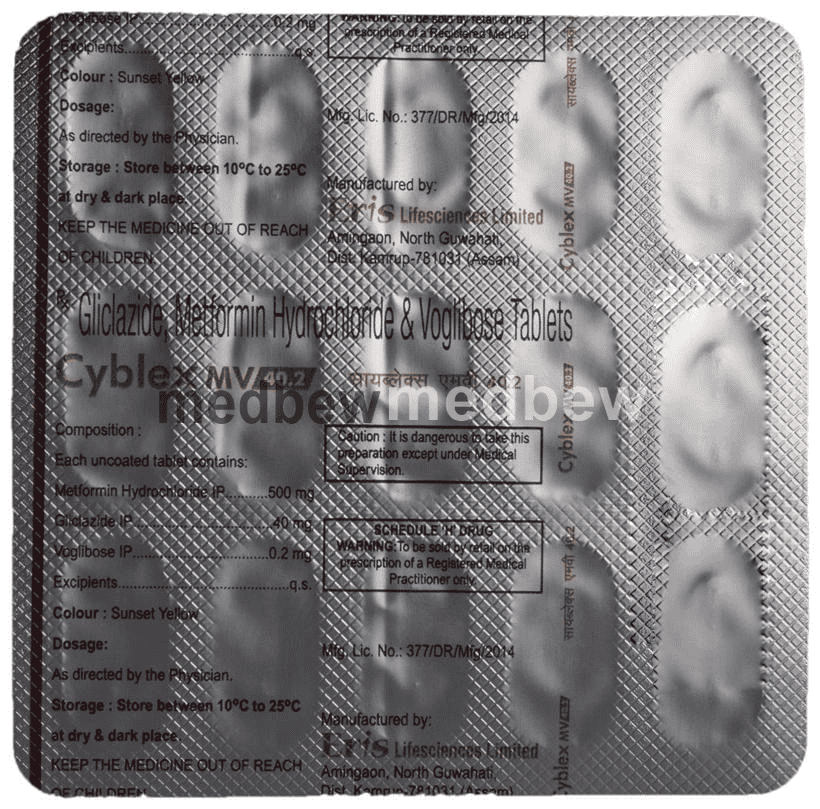Cyblex MV 40.2 Tablet belongs to a category of medicines known as anti-diabetic drugs. It is a combination of medicines used to treat type 2 diabetes mellitus in adults. It helps control blood sugar levels in people with diabetes.
