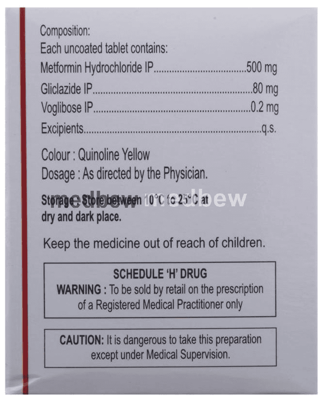 Composition Voglibose (0.2mg) + Metformin (500mg) + Gliclazide (80mg)