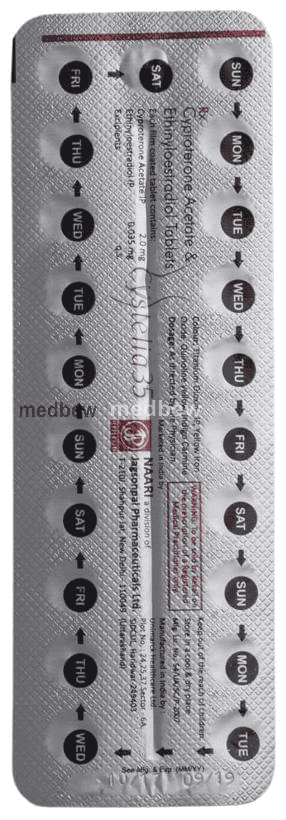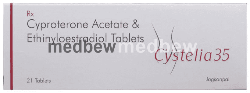 Cystelia 35 Tablet is a combination of two hormonal medicines used to treat symptoms of polycystic ovary syndrome (PCOS) such as excessive hair growth (hirsutism), acne and irregular periods. It also works as a contraceptive, hence avoid using any other contraceptive pill.