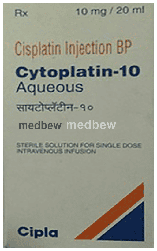 Cytoplatin 10mg Injection is used in the treatment of ovarian, cervical and testicular cancer. It shows its working by stopping or slowing down the growth of cancer cells.