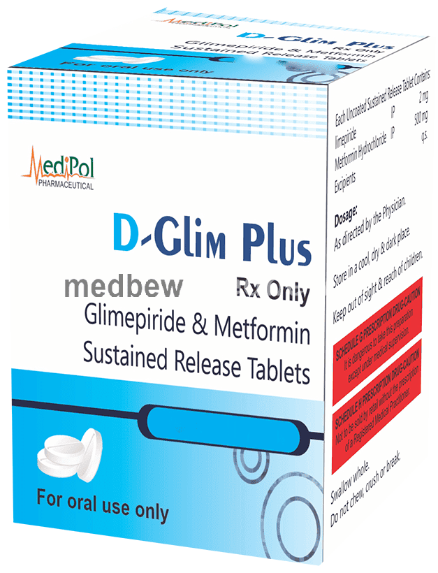 D-Glim Plus Tablet SR belongs to a category of medicines known as anti-diabetic drugs. It is a combination of two medicines used to treat type 2 diabetes mellitus in adults. It helps control blood sugar levels in people with diabetes.