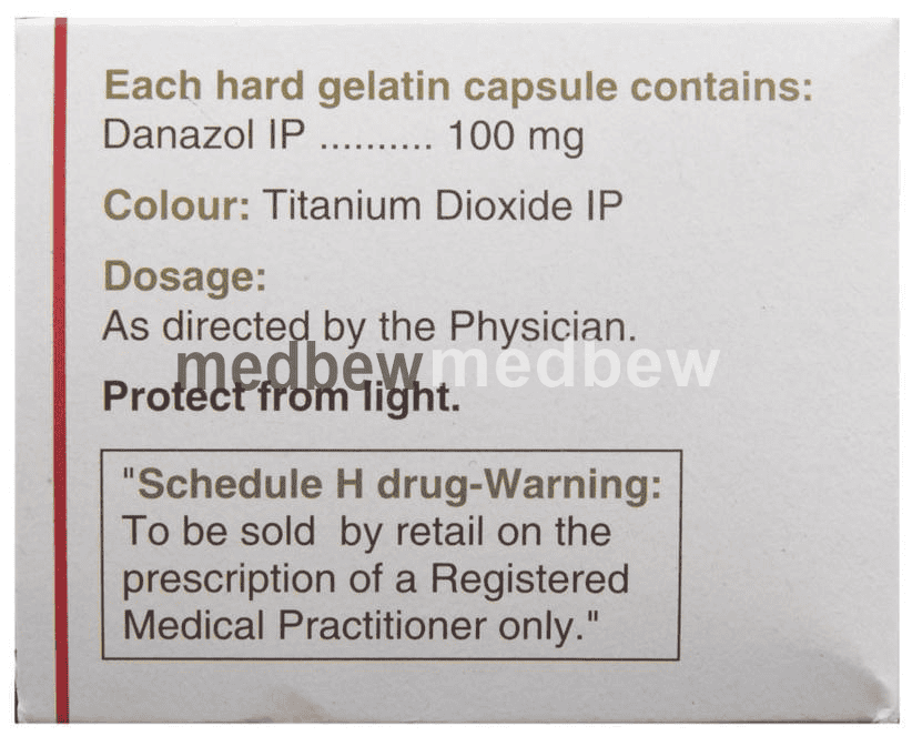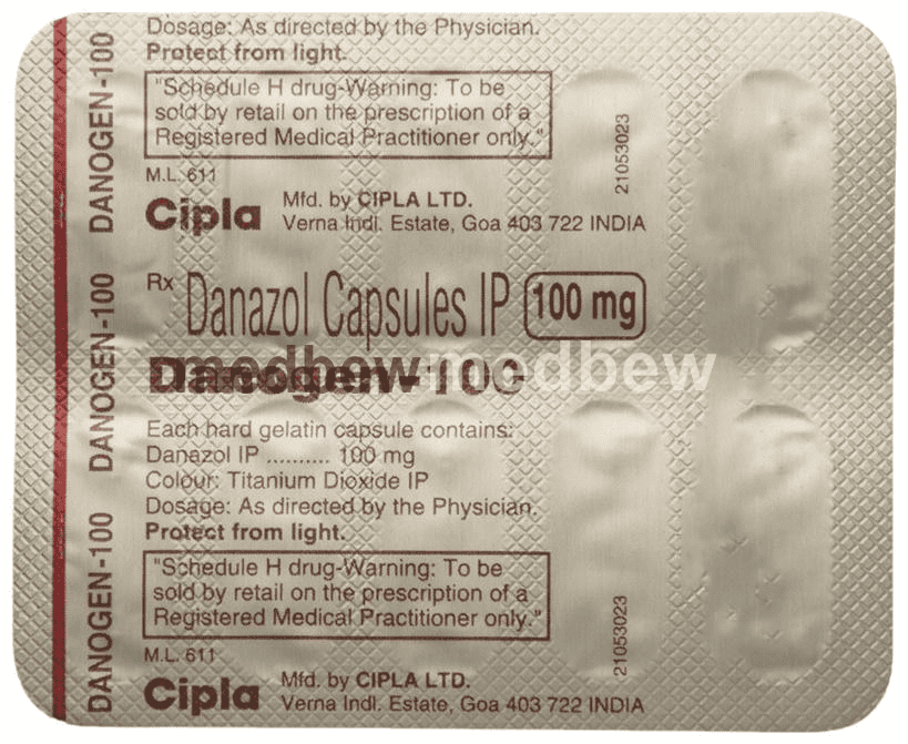 Danogen 100 Capsule is used to treat various menstrual problems including painful or irregular periods, premenstrual tension (PMT), benign fibrocystic breast disease (painful breast disease), and a condition called endometriosis.