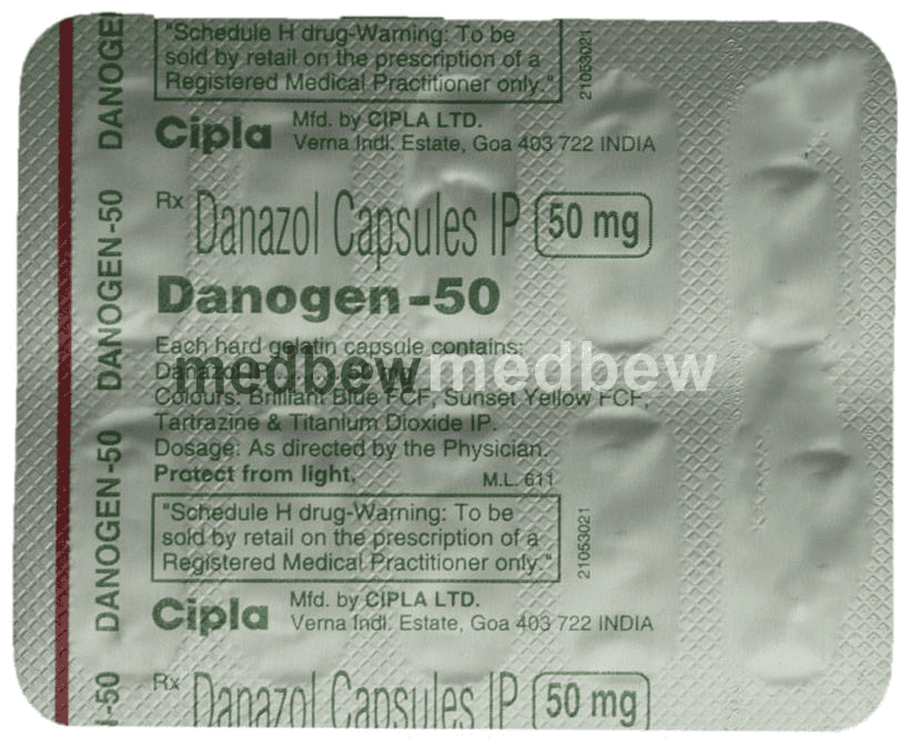Danogen 50 Capsule is used to treat various menstrual problems including painful or irregular periods, premenstrual tension (PMT), benign fibrocystic breast disease (painful breast disease), and a condition called endometriosis.