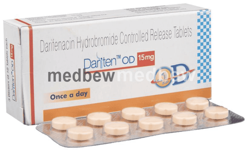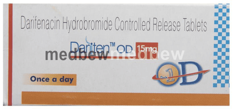 Dariten OD 15mg Tablet CR is a muscarinic antagonist that is used in the treatment of overactive bladder. It relieves urinary symptoms like frequent urination, urgent need to urinate, and inability to control urination.