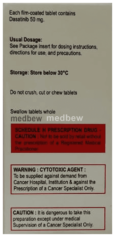 Dasashil 50mg Tablet can be taken with or without food, but try to have it at the same time every day to get the most benefits. Your doctor will decide what dose is necessary and how often you need to take it. This will depend on what you are being treated for and may change from time to time. You should take it exactly as your doctor has advised. Taking it in the wrong way or taking too much can cause very serious side effects. It may take several weeks or months for you to see or feel the benefits but do not stop taking it unless your doctor tells you to.