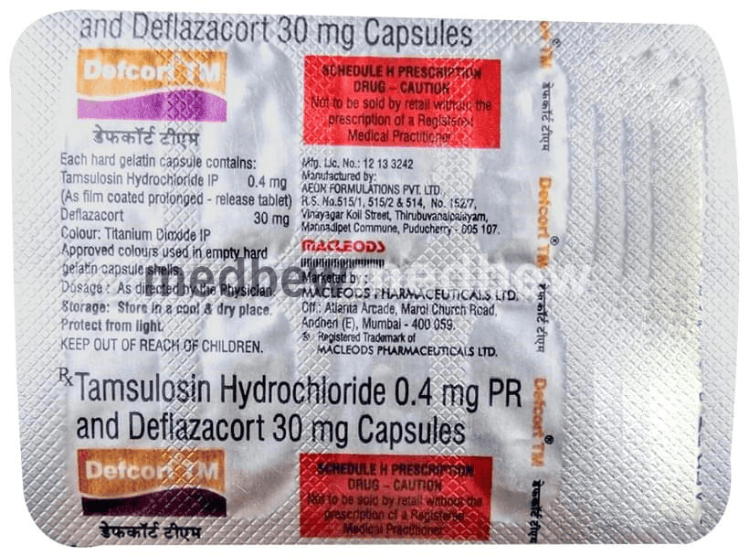 Defcort TM Capsule PR is a combination of two medicines used in to treat kidney stones. It relaxes the bladder and reduces pain, swelling, and other symptoms of inflammation associated with kidney stones.