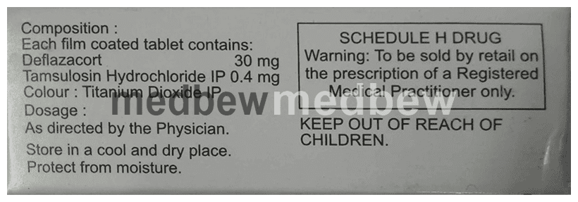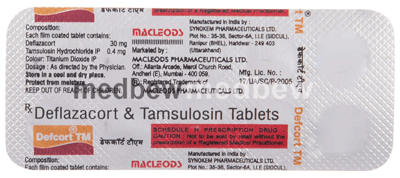 Defcort TM Tablet is a combination of two medicines used in to treat kidney stones. It relaxes the bladder and reduces pain, swelling, and other symptoms of inflammation associated with kidney stones.