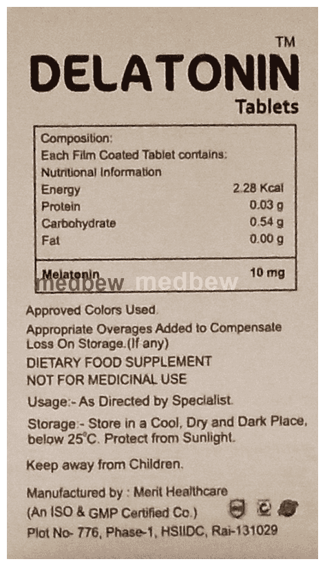Usually Delatonin Tablet is taken once a day, before going to bed. Take it exactly as prescribed by your doctor. Delatonin Tablet is a natural hormone produced by the body which peaks to its highest levels at night.