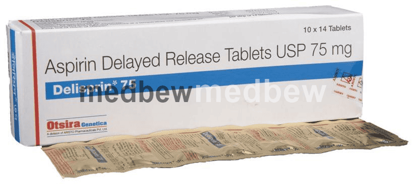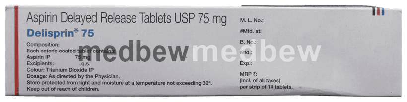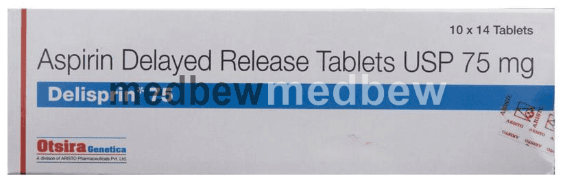 Delisprin 75 Tablet is an antiplatelet medicine used to treat and prevent heart attacks, strokes, and heart-related chest pain (angina). It helps to prevent the formation of blood clots in your blood vessels. It is a very widely used medicine for heart protection.