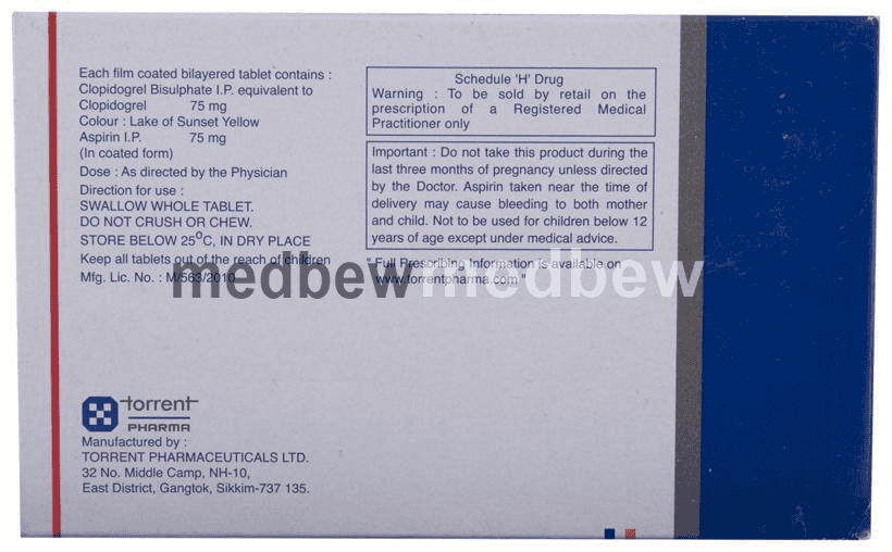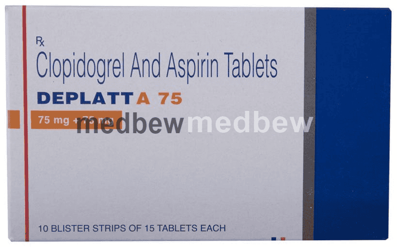 Deplatt A 75 Tablet is a combination of two antiplatelet medicines: Aspirin and Clopidogrel which prevent heart attack. They work by preventing the platelets from sticking together and decrease the formation of harmful blood clots.