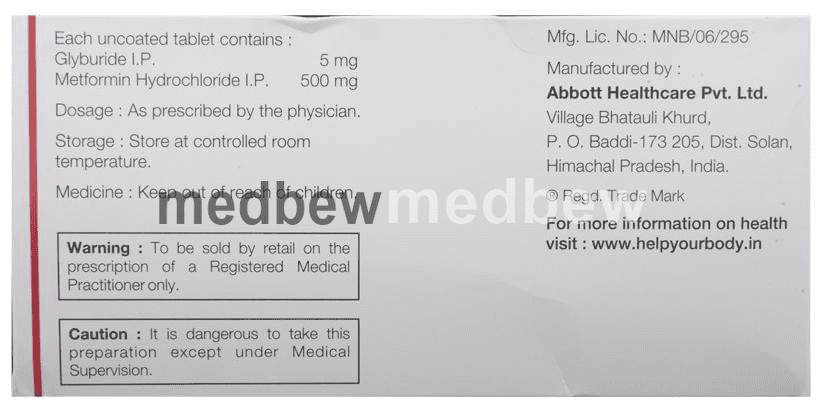 Glibenclamide, when used with insulin, can help to control high blood sugar levels. Taking them together can help to lower the dose of insulin but there could also be an increased risk of hypoglycemia (low blood sugar levels). The dose of these medicines may need to be adjusted along with regular blood sugar level monitoring. Please consult your doctor if you have any doubts and follow your doctor’s instructions carefully to get maximum benefit of Glibenclamide.