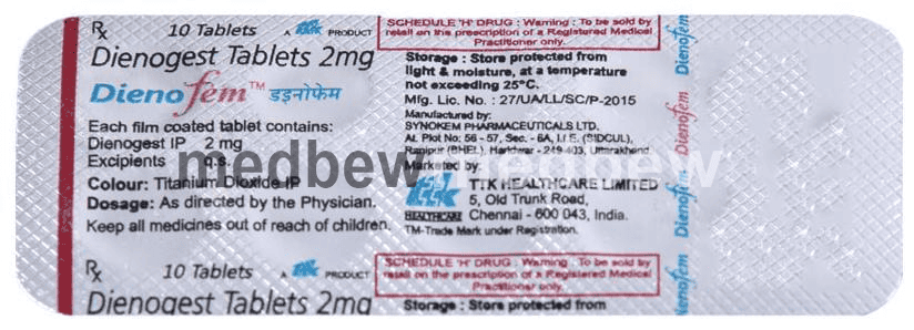 Dienofem Tablet is a progestin (female hormone). It works by suppressing the production of estradiol, a hormone that causes excessive growth of the endometrium.