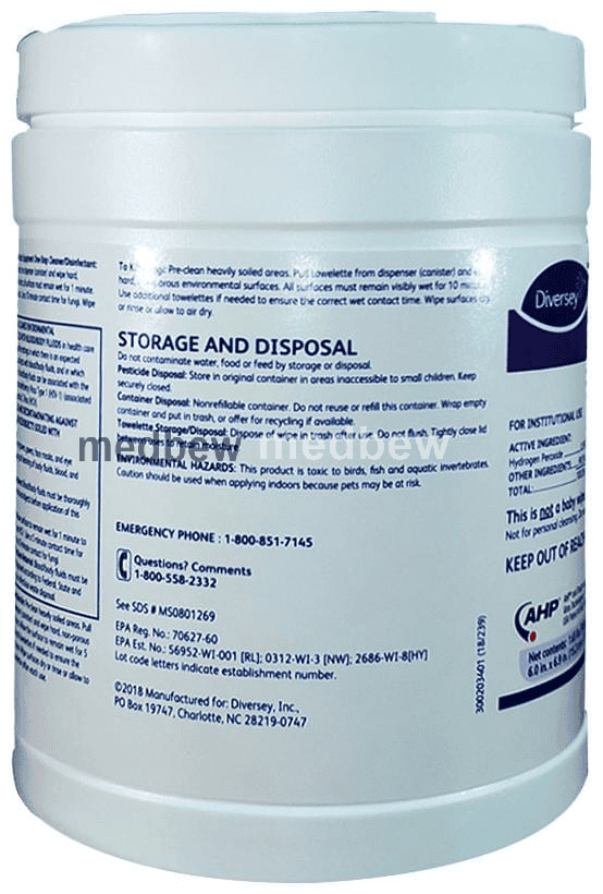 Diversey Oxivir Tb Wipes White is for external use only. You should always use it exactly as your doctor has told you. The affected area should be clean and dry before application. You must wash your hands thoroughly before and after applying this medicine. This medicine should be used regularly to get the most benefit from it. Do not use more than you need as it will not clear your condition faster and some side effects may be increased. If your condition goes on for longer than four weeks or gets worse at any time, let your doctor know. You can help this medicine work better by keeping the affected areas clean, making sure they are dry and washing your hands before and after treating the infection.
