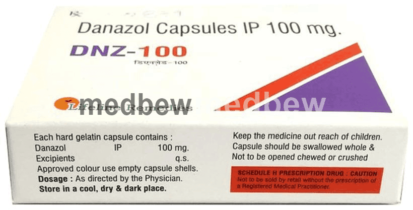 DNZ 100 Capsule is used to treat various menstrual problems including painful or irregular periods, premenstrual tension (PMT), benign fibrocystic breast disease (painful breast disease), and a condition called endometriosis.