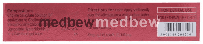 Composition Choline Salicylate (8.7% w/w) + Lidocaine (2% w/w)