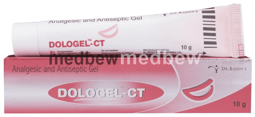 Dologel-CT Gel is a combination of two medicines is used to treat mouth ulcers. It also reduces the pain, swelling, redness, and burning sensation of the ulcers.