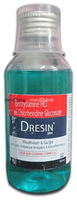 Dresin Mouthwash & Gargle is a combination of two medicines. It is used to treat the inflammation of gums. This mouthwash has antimicrobial action on the infection-causing bacteria. It also reduces inflammation such as redness, pain, and swelling.