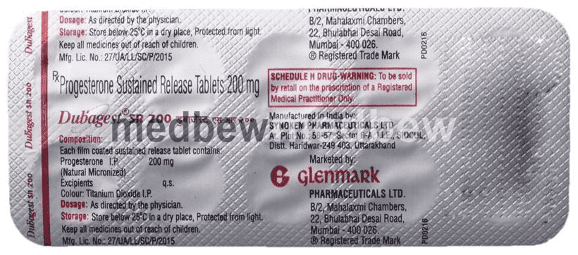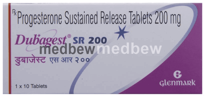 Dubagest SR 200 Tablet is a progesterone (female hormone). It helps to establish and maintain pregnancy. It also prevents the increase in thickness of the endometrium (lining of the uterus) caused by estrogen.