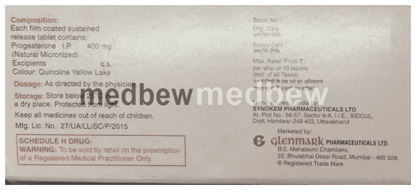 Dubagest SR 400 Tablet is a natural progesterone available as a micronized formulation which helps in better absorption of this medicine.
